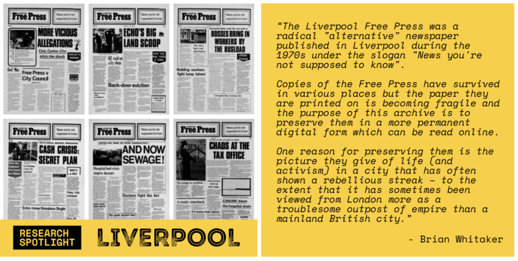 - Brian Whitaker – The Liverpool Free Press online archive (including a page of helpful resources) and the Liverpool People’s History website